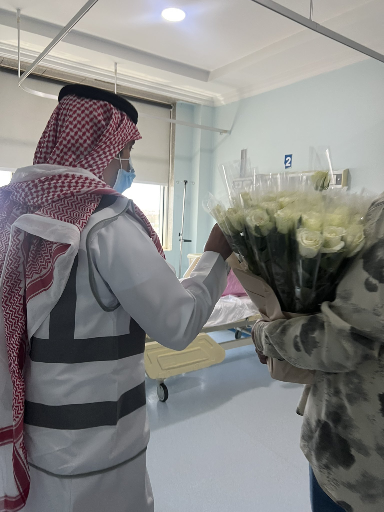 زيارة متطوعين جمعية مشاة طيبة الرياضي بالتعاون مع مستشفى الحياة الوطني للمرضى وتوزيع الورود والهدايا ومعايدتهم وبث الفرح والسرور للمرضى بمناسبة عيد الفطر المبارك